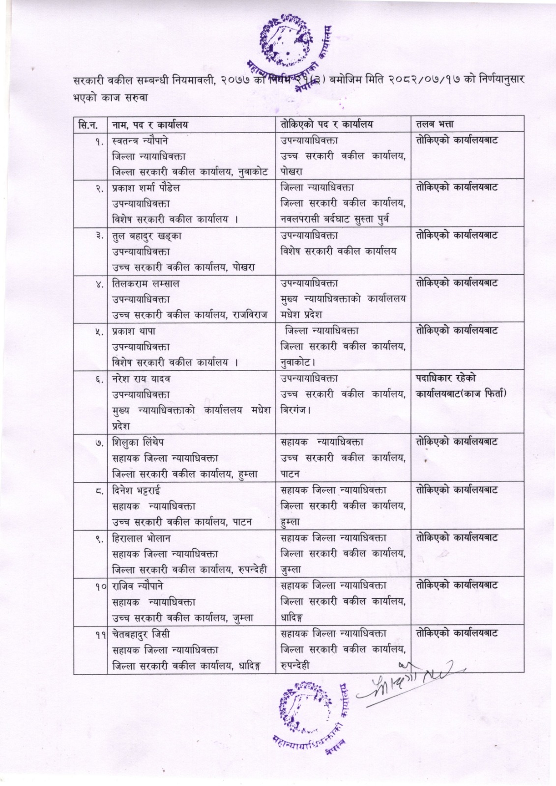 मिति २०८२।०७।१७ गतेको काज सरूवा सम्बन्धमा ।